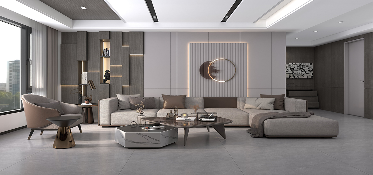 秦皇達陶瓷,750X1500mmNK肌膚磚,松煙灰,時尚與優雅并存。 極簡的設計,不會給空間增加負擔,松煙灰,給生活增添了活力與趣味。 沉靜淡雅的色澤,突顯了松煙灰的高雅質感,讓空間產生獨有的動態感官,給人一種舒適愜意的感覺